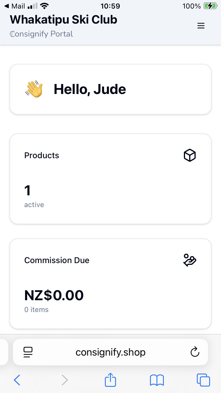 This simple view shows how many products you have lodged with us for sale. The commission due back to you, will be updated as your gear is sold. :)