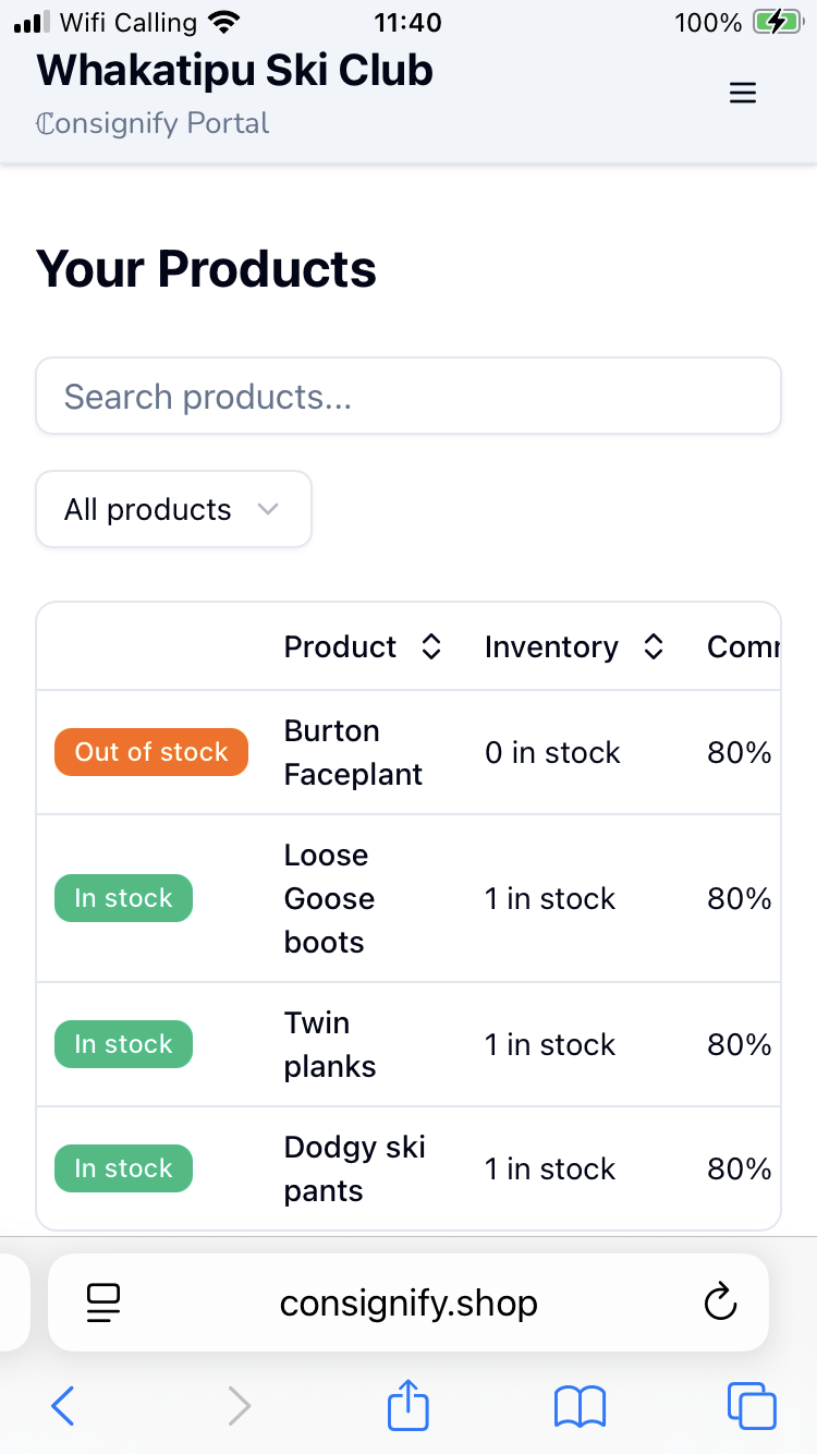 The Products view shows the status of your gear. In stock, means it hasn't sold yet, and anything shown as "Out of Stock" has been sold. Congratulations!